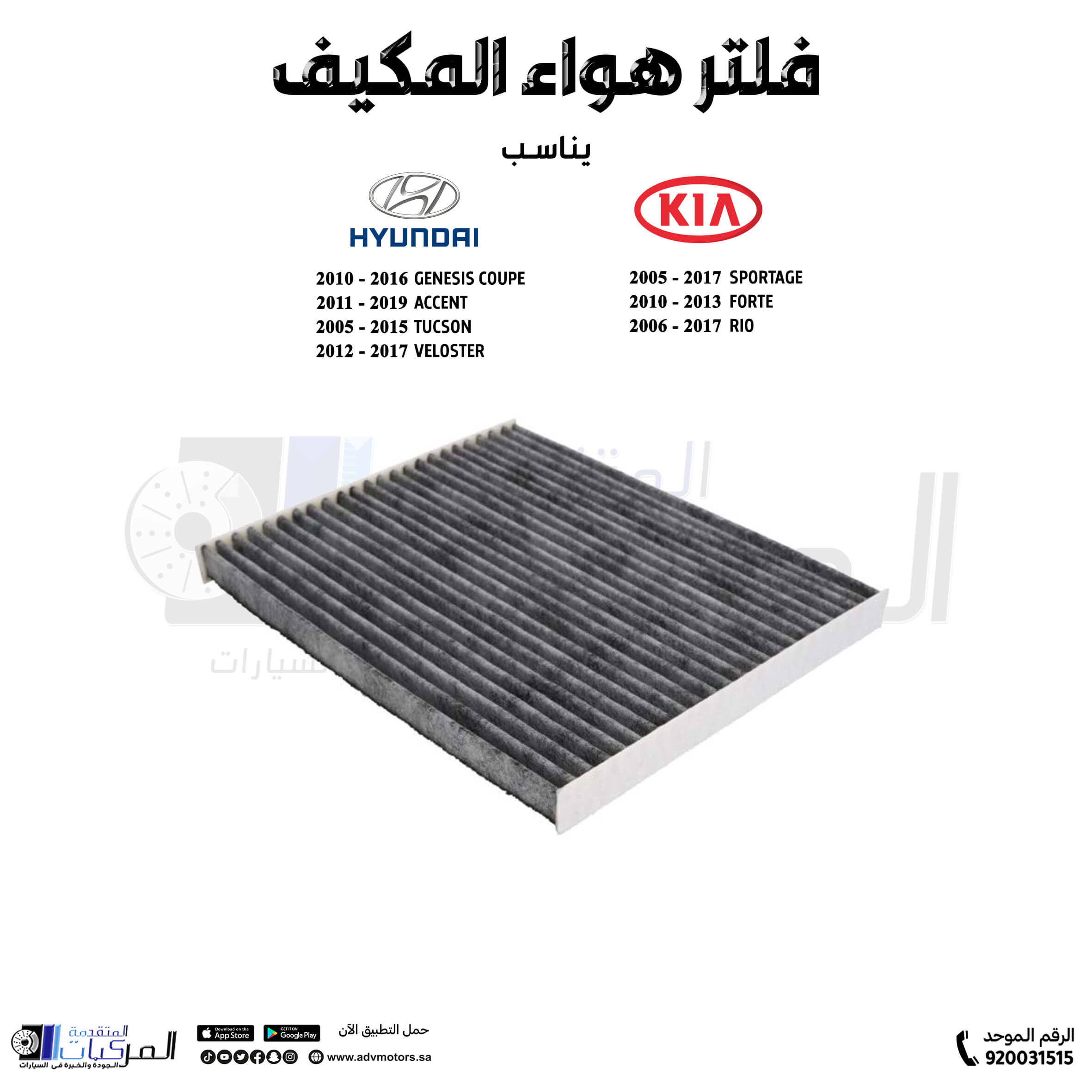 فلتر هواء المكيف اكسنت / جينيسيس كوبيه / سانتافي / توسان / فورتي / ريو / سبورتاج / فيلوستر ( 2004 – 2017 )