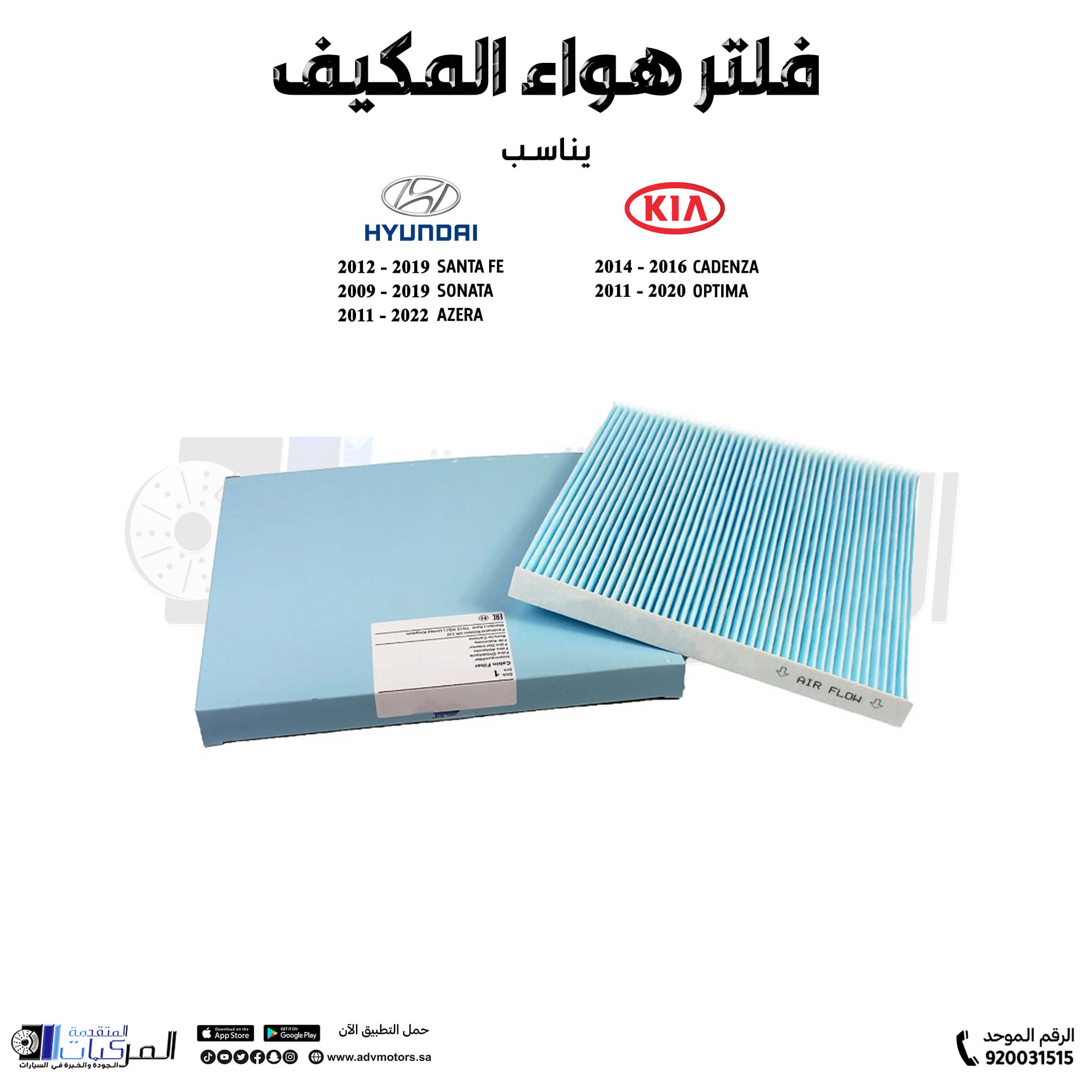 فلتر هواء المكيف هيونداي ازيرا / سانتافي / سوناتا / كادينزا / اوبتيما (2009-2022)