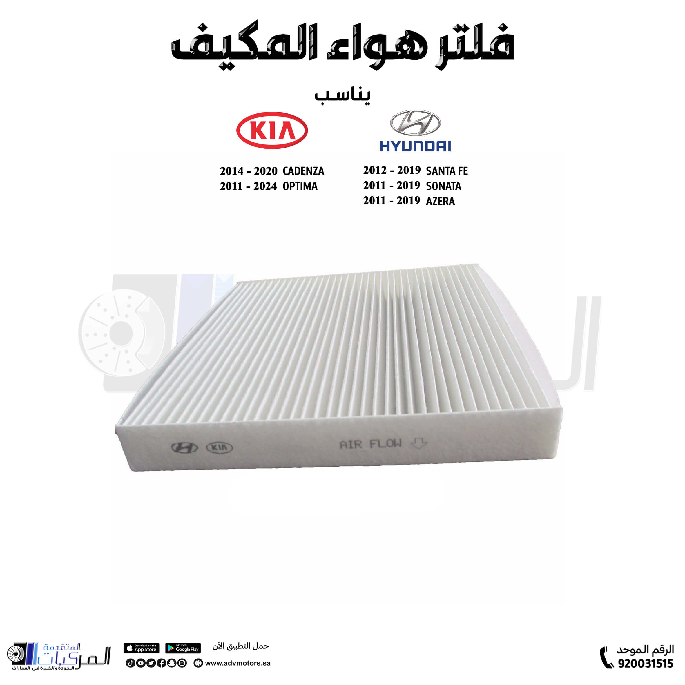 فلتر هواء المكيف هيونداي ازيرا / سانتافي / كيا اوبتيما / سوناتا / كادينزا ( 2011 – 2024 )